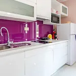 Varje rum har också byxpress, satellit-TV och luftkonditionering. Lägenheten har ett badrum med duschkabin och dusch.